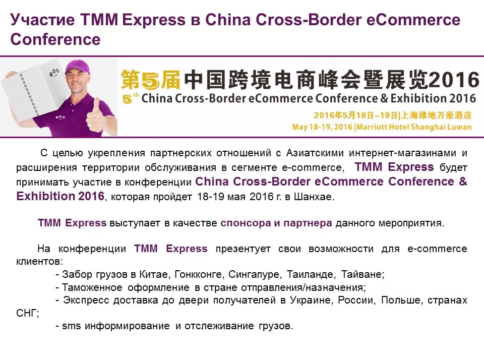 В связи с этим, сообщаем Вам, что с 15.04.15 брендом TММ Express в Украине будет представлять компания ООО «ТММ Экспресс».